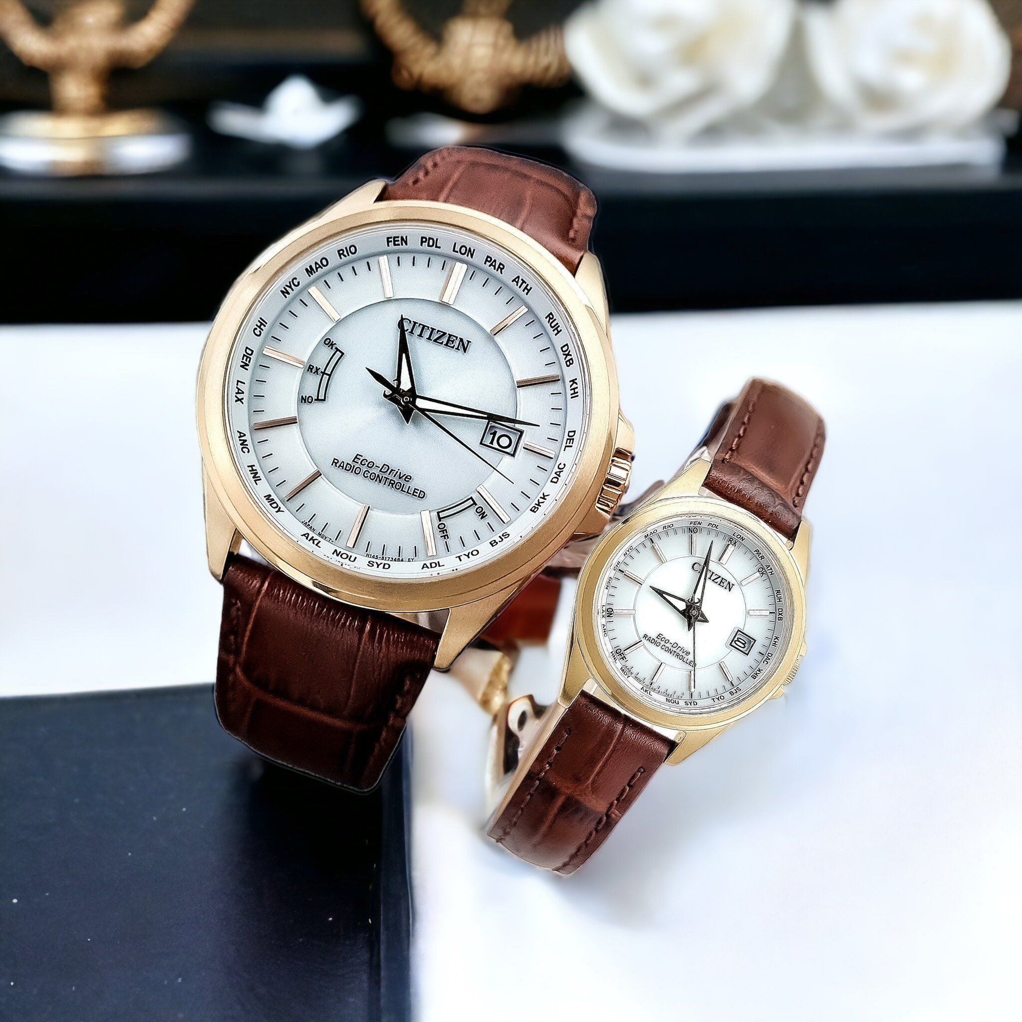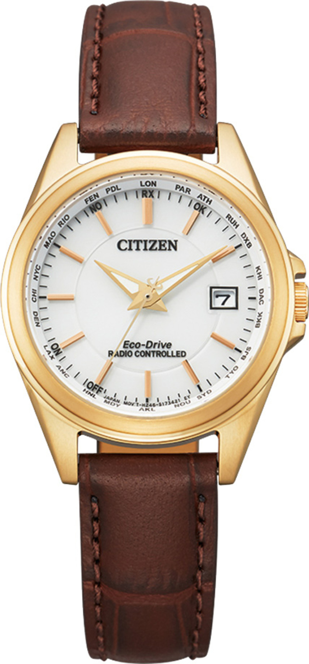 Cette montre CITIZEN EC1183-16A est juste magnifique ! Mouvement Eco-Drive - donc elle se recharge à la lumière, plus jamais besoin de changer la pile. Elle est aussi radio-pilotée pour une précision absolue. Le boîtier en acier inoxydable or rose de 29mm de diamètre est élégant et discret. Le cadran argenté avec affichage de la date, le bracelet en cuir marron et la boucle ardillon en font un accessoire raffiné. Étanche jusqu'à 10 ATM (100m), vous pouvez même la porter pour nager. Verre minéral résistant aux rayures. Une montre fiable, écologique et super stylée - le cadeau parfait pour une femme qui apprécie la qualité et l'élégance intemporelle !