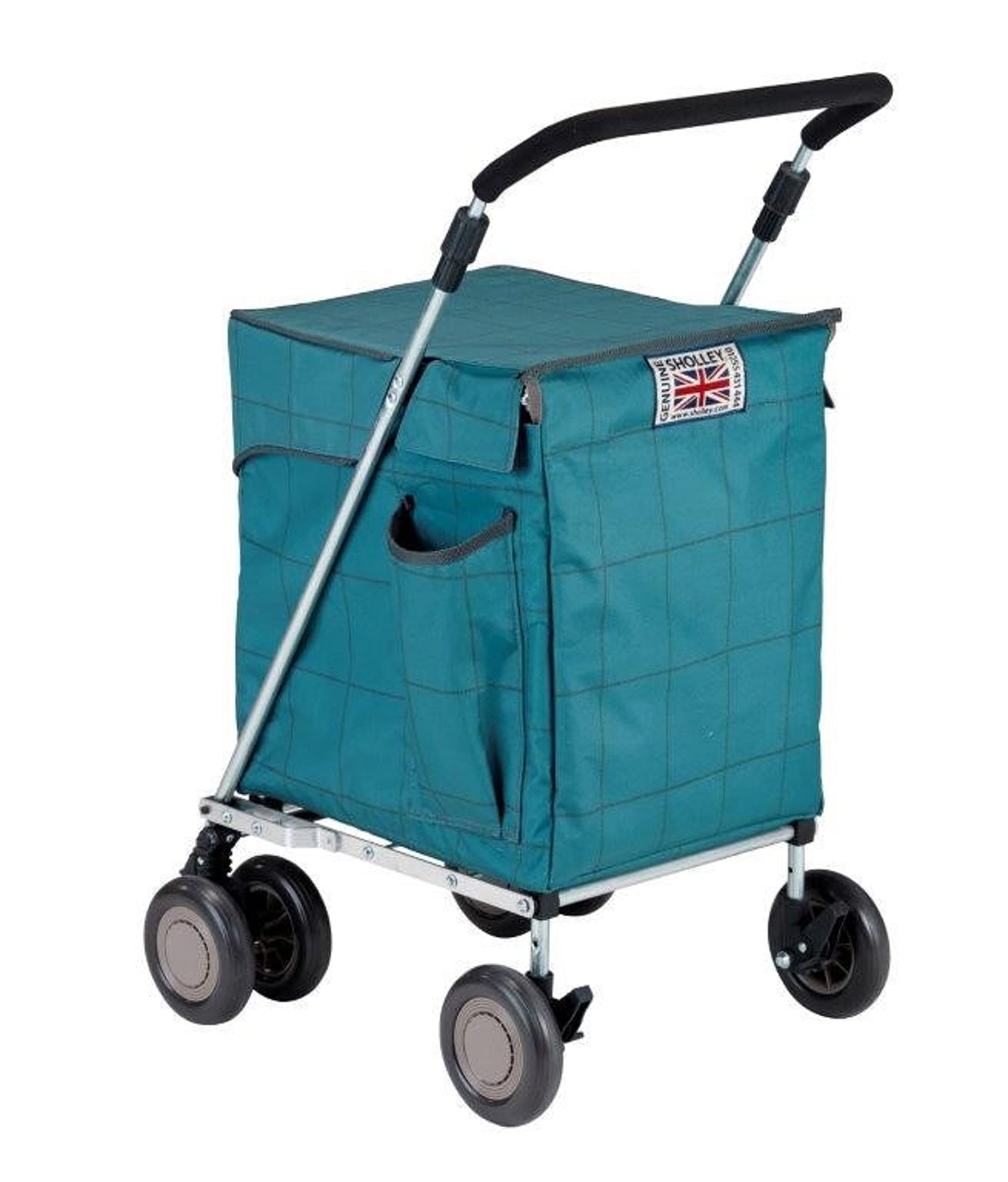 Le Sholley change la vie pour les courses ! Avec ses 4 roues et son design breveté sans essieu arrière, il sert aussi d'aide à la marche. La poignée est réglable en hauteur, les roues avant pivotent et se verrouillent. Le plateau rigide supporte un panier plein, et les multiples poches organisent vos affaires. Se plie instantanément pour la voiture. Recommandé par les médecins pour les personnes ayant des difficultés à marcher. Fabriqué en Angleterre depuis 38 ans - la qualité est au rendez-vous ! Garantie 1 an.