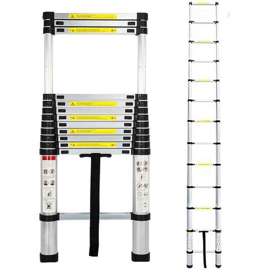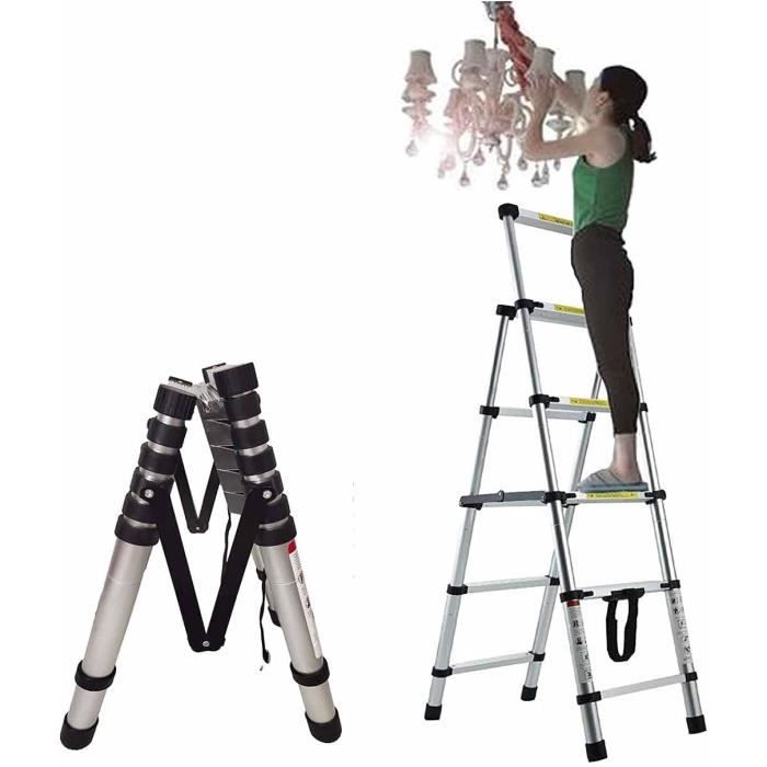 Cette échelle télescopique, c'est le compagnon idéal pour tous vos travaux en hauteur ! En aluminium 6061 de qualité supérieure, elle est solide comme un roc mais légère à porter.\n\nCe qui la rend exceptionnelle :\n- Se déploie de 0,7 m à 2,6 m - parfaite pour atteindre les endroits difficiles d'accès\n- Système de verrouillage intelligent à chaque niveau - vous êtes en sécurité à chaque barreau\n- Pieds en caoutchouc antidérapants qui tiennent même sur les sols glissants\n- Sangle en nylon pour maintenir l'échelle repliée pendant le transport\n\nLa norme EN131 ? C'est la garantie d'un produit professionnel et sécurisé. Chaque barreau a une bande noire antidérapante, et les clés de verrouillage évitent tout choc entre les sections.\n\nParfaite pour :\n- Changer une ampoule en hauteur\n- Peindre les plafonds\n- Nettoyer les vitres difficiles d'accès\n- Tous les petits travaux de bricolage\n- Même pour décorer le sapin de Noël !\n\nLe design pliable est ultra pratique - une fois repliée, elle ne prend presque pas de place dans votre coffre de voiture ou votre local à vélos. La poignée antidérapante rend le transport vraiment facile.\n\nUn cadeau idéal pour les bricoleurs du dimanche comme pour les pros. Avec cette échelle, fini le risque de monter sur une chaise bancale ! 🔧🪜