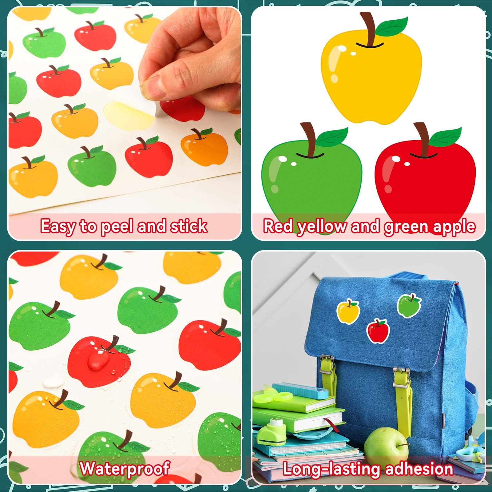 Ce lot de 300 autocollants en forme de pomme est parfait pour motiver et récompenser les enfants ! Chaque autocollant mesure 3 cm, avec des couleurs vives et un design mignon de pomme rouge qui ne se déchire ni ne se décolore facilement. Idéal pour les enseignants qui veulent encourager les élèves, décorer les cahiers, les tableaux ou les boîtes à goûter. Vous pouvez aussi les utiliser à la maison pour un système de récompense ou pour des activités manuelles. Polyvalents, ils s'adaptent aux fêtes d'automne, aux décorations de classe ou aux cadeaux. Une quantité généreuse pour un prix abordable, ces autocollants apporteront une touche joyeuse et colorée à votre quotidien. Les enfants adorent collectionner et coller ces petites pommes !