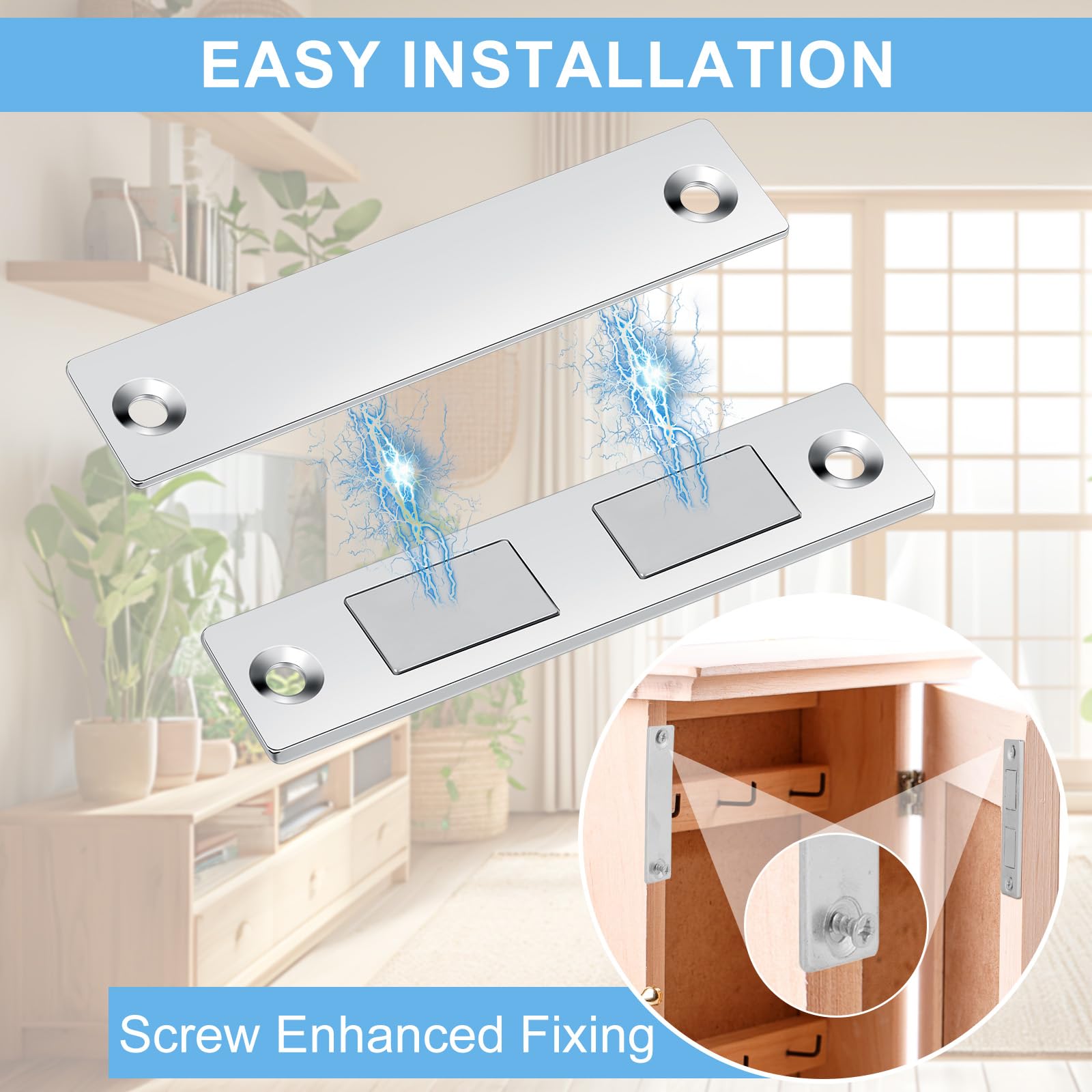 Enfin une solution simple et efficace pour empêcher les petits curieux d'ouvrir les portes de placard ! Ces loquets magnétiques super puissants vont devenir tes meilleurs alliés sécurité à la maison. Parfaits pour la cuisine, les armoires, les meubles ou même les garde-manger, ils empêchent les enfants en bas âge et les animaux domestiques d'accéder au contenu. L'installation est ultra simple : un tournevis, quelques vis fournies (16 vis en acier inoxydable incluses), et le tour est joué en 5 minutes chrono ! Les aimants sont vraiment costauds - une fois fermé, impossible pour les petites mains de l'ouvrir. En acier inoxydable, ils résistent à la rouille et à l'humidité, donc parfaits pour la cuisine. Le lot de 4 te permet de sécuriser plusieurs placards à la fois. Plus besoin de stresser quand bébé se balade dans la cuisine ou quand ton chat trop curieux veut fouiller dans les armoires !