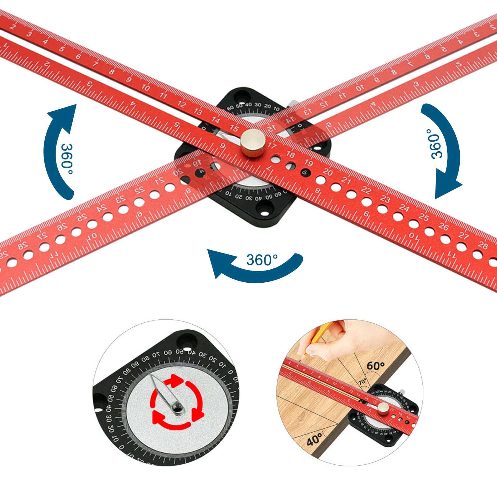 Ce compas de traçage est l'outil rêvé pour les bricoleurs et professionnels ! Fabriqué en alliage d'aluminium robuste, il ne rouille pas et ne casse pas. Il dispose d'une double échelle (métrique et pouces) pour un traçage de haute précision. Réglable, il permet de dessiner des cercles ou des arcs avec un rayon maximum de 534 mm (diamètre max 1068 mm). Son utilisation est simple : placez la pointe au centre, réglez le rayon et tracez ! Idéal pour le travail du bois, la décoration, le dessin industriel ou même le travail du cuir. Un outil fiable et précis pour tous vos projets créatifs !