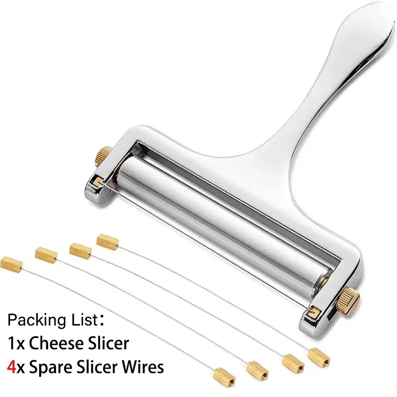 Devenez le maître fromager de votre cuisine avec la trancheuse Choxila en acier inoxydable ! Épaisseur réglable jusqu'à 6,35mm pour des tranches parfaites de raclette, cheddar, gruyère, mozzarella... Compatible avec des blocs de fromage jusqu'à 8,9cm de large. Construction en acier inox et alliage de zinc pour une durabilité exceptionnelle. Design ergonomique avec grande molette et poignée confortable pour une utilisation sans effort. Livrée avec 3 fils de rechange en acier inox. Nettoyage facile à la main. Fini le fromage pré-tranché ! Idéale pour les planches de charcuterie, sandwichs grillés, ou simplement pour déguster du fromage parfaitement tranché. Un must-have pour tous les amateurs de fromage !